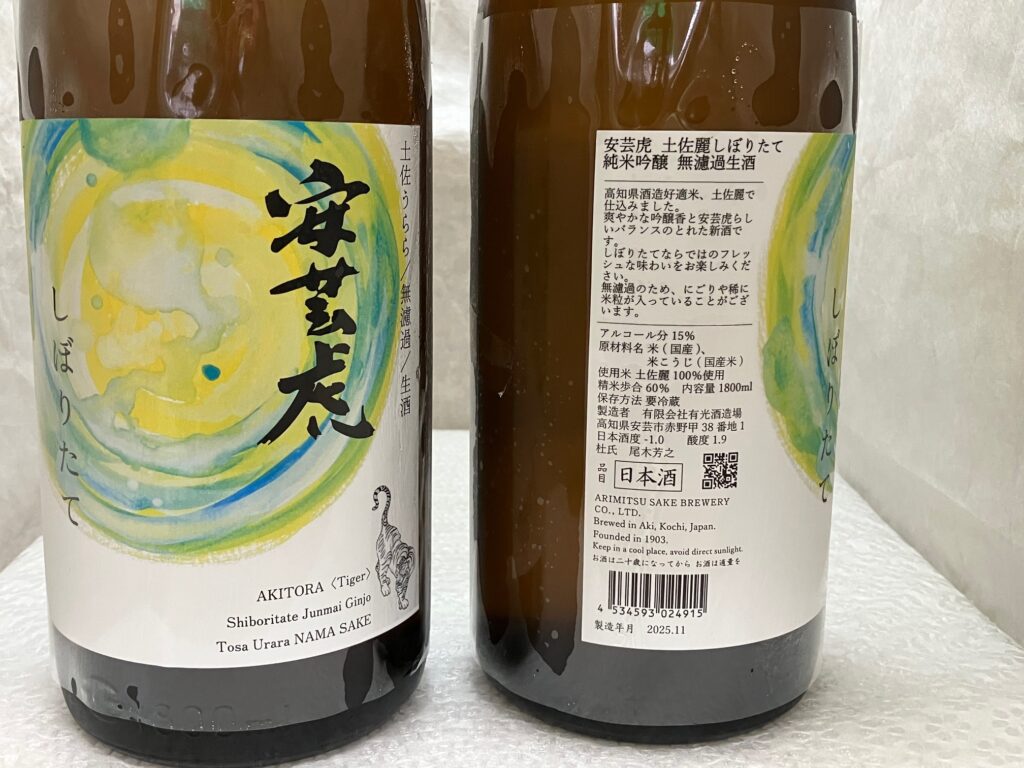 安芸虎でお馴染みの有光酒造場さんの新酒、安芸虎土佐麗しぼりたて純米吟醸無濾過生酒が入荷しました。昨年から高知の酒米土佐麗を原型精米にて使用。結果さわやかで透明感のある味わいがプラスされ、フルーティーな吟醸香が増していました。今年はどんな感じに仕上がっているでしょう。お試し下さい。